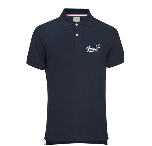 Klassisk pique-strikket skjorte i 100% kjemmet bomull. Forkrympet og med doble sømmer og forsterket nakkesøm. Spesielt finmasket pique for å oppnå best mulig grunnlag for trykk og brodering. Rød, hvit og blå neck-tape. 200g/m2