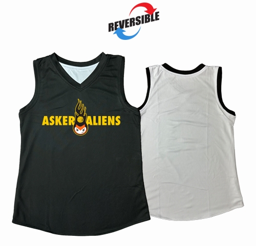 Praktisk og behagelig vendbar trenings singlet i polyester materiale. Modellen er en innsvinget modell tilpasset for jenter/damer. Klubblogo i transfer trykket i front på den mørke siden. For å beholde trykket i god kvalitet lengst mulig anbefales det å vaske trøyen vrengt i maks 40 grader. Må ikke tørkes i tørketrommel.